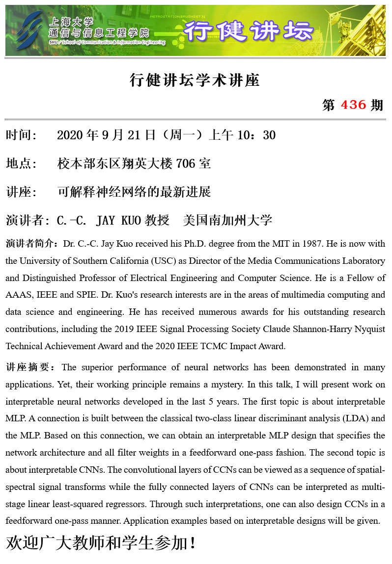 上一条:行健讲坛 №437 -台湾医学工程简介 下一条:行健讲坛 №434 -基于多帧联合优化的压缩视频质量增强技术